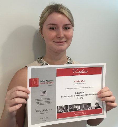 Natalia Weir from McInnes Wilson Lawyers has recently completed her Certificate III in Business Administration (Legal) and been awarded with her certificate.
